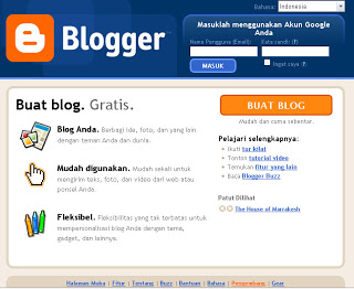 Cara membuat web blog pertama harus daftar dulu di www.blogger.com pilih bahasa tentunya bahasa indonesia karena kita orang indonesia. Sekarang saya akan tunjukan cara untuk membuat sebuah account baru di blogger.com, yang 100% gratis. setelah kamu masuk ke www.blogger.com maka akan tampak seperti di gambar di bawah ini :